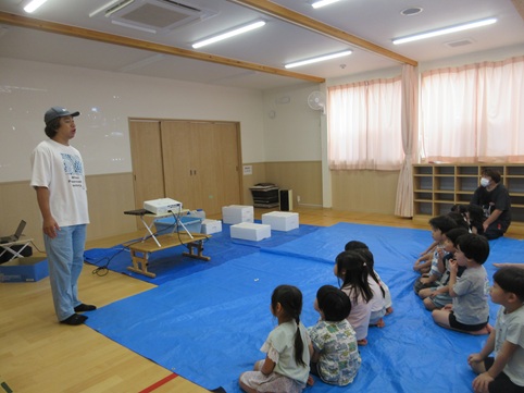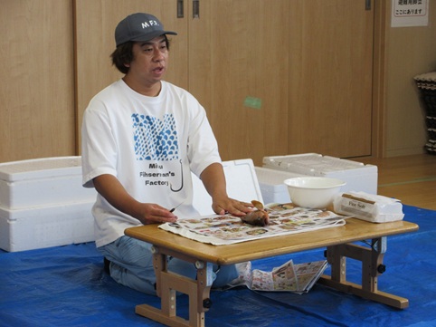9月25日 御津フィッシャーマンズファクトリーさんに来園していただき「生きた魚を触ろう」をテーマに魚に触ってみたり命の大切さについて学んだりしました