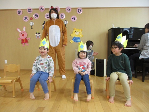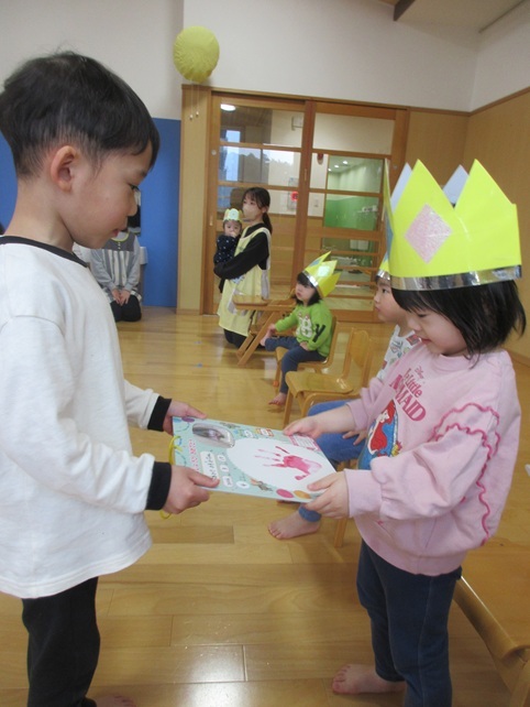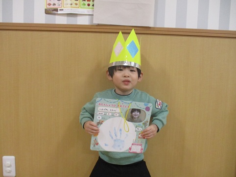 3月は6人のお友だちのお誕生会でした。残念ながら一人、お休みのお友だちがいましたが、みんなにお祝いしてもらえてとっても嬉しそうでした。
