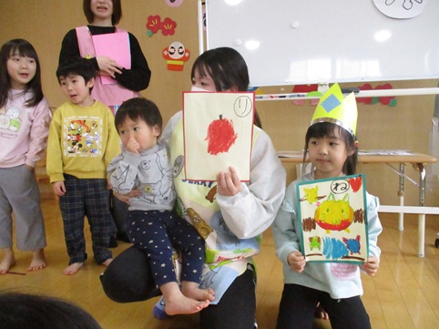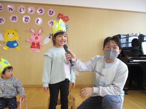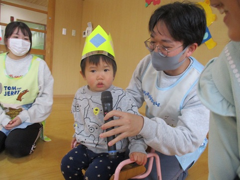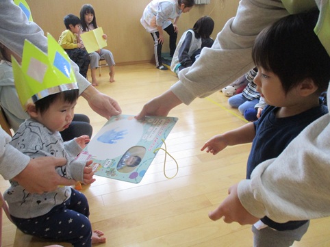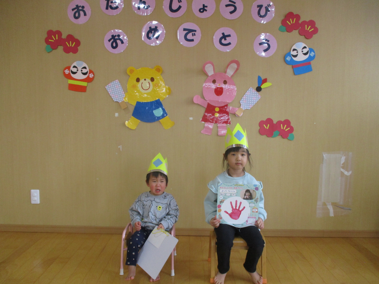 1月は2人のお友だちのお誕生会でした。仲良く入場!