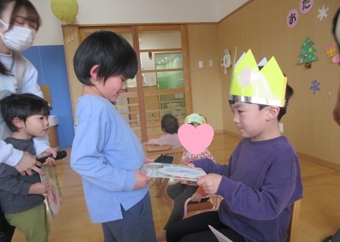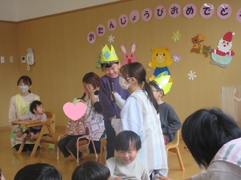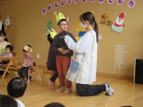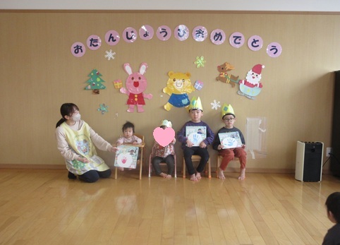 最後は12月生まれのお友だちにケーキをプレゼント「一緒に食べよう!お誕生日おめでとう!」
