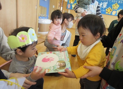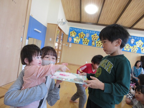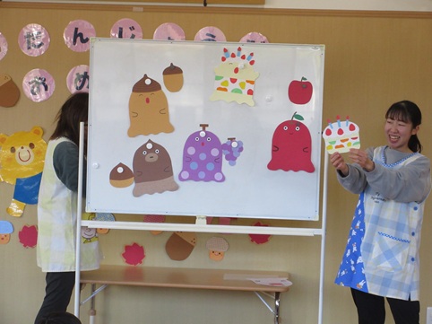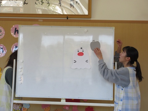 先生達からのプレゼントは「くいしんぼうおばけ」のホワイトボードシアター