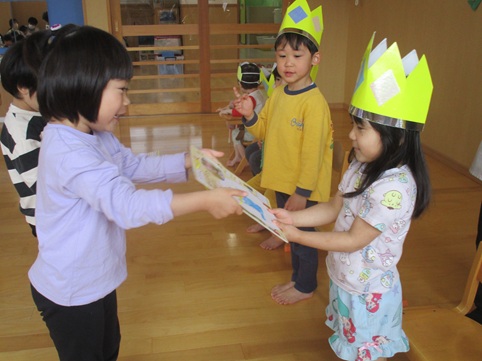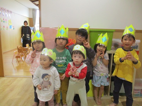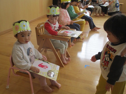 誕生児のお友達は、お王冠をかぶって準備万端!
