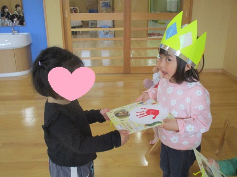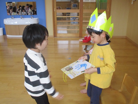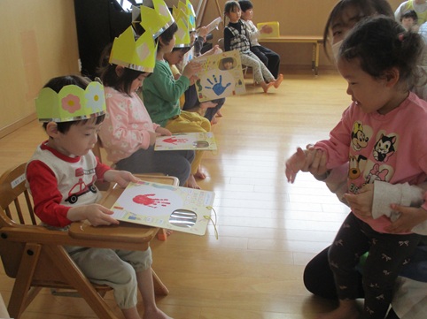 「○○くんの手、大きいね~」と一緒にカードを見ていました。