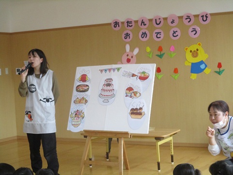 先生たちからは「魔法のレンジ」のパネルシアターのプレゼントです!