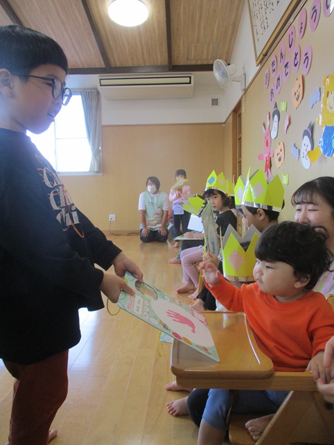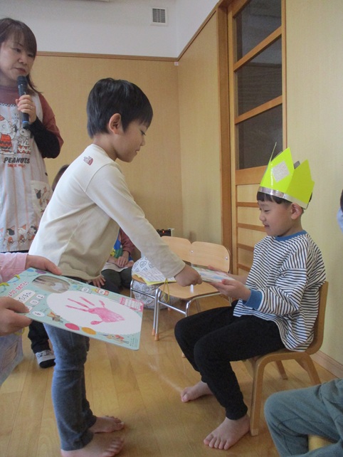 らいおんぐみのおともだちからプレゼントをもらったよ「ありがとう」
