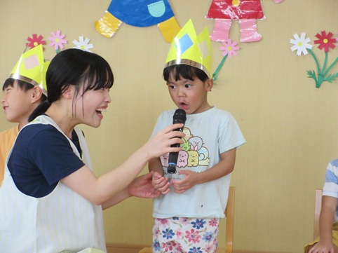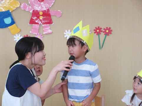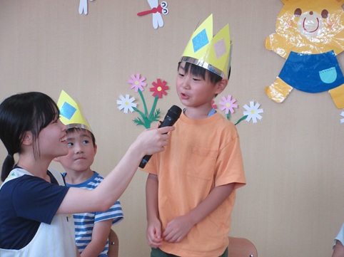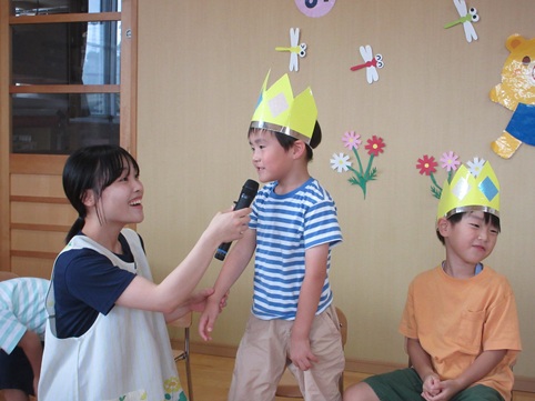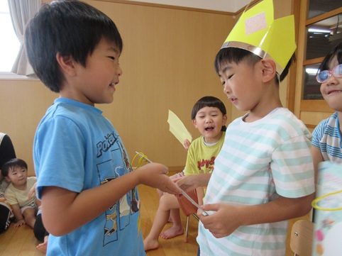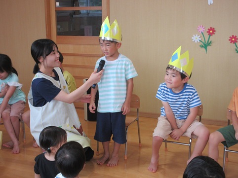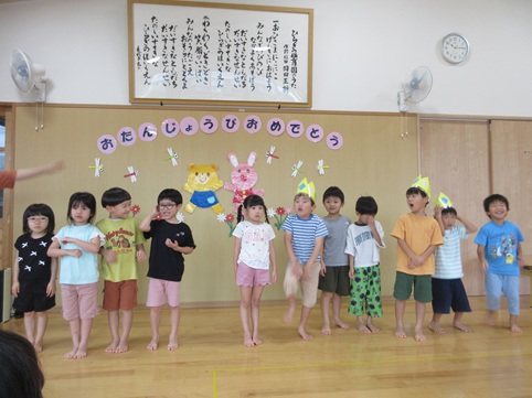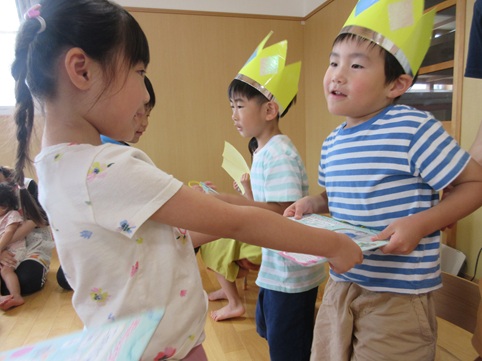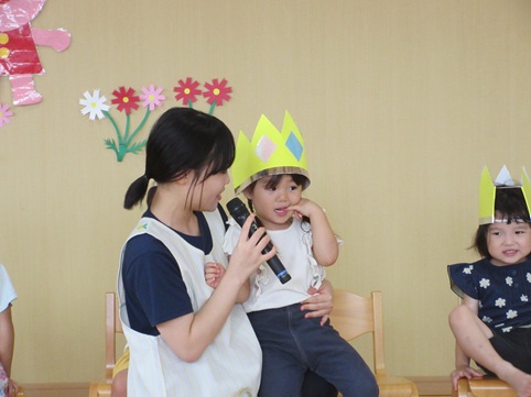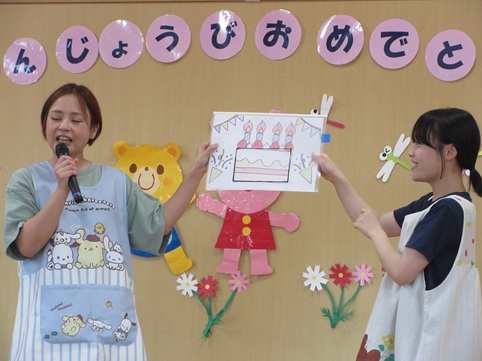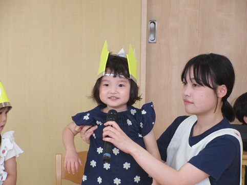 今月は「大きな栗の木の下で」の手あそびをしてくれました