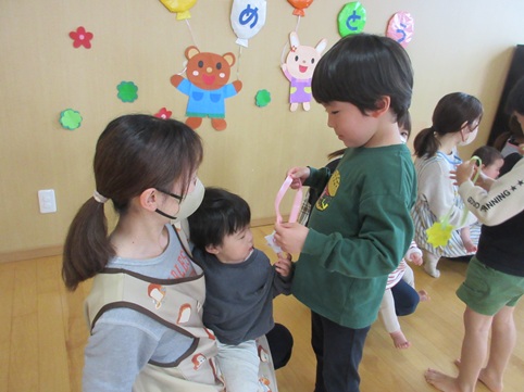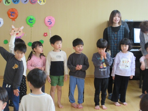 「はるですね はるですよ」をみんなで歌って、入園と進級のお祝いしました。